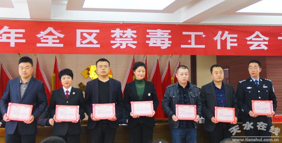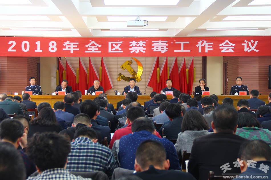 雷鳴在講話中指出,2017年,在全區(qū)上下的共同努力下,秦州區(qū)連續(xù)三年被評為全省、全市禁毒工作先進(jìn)區(qū),成績十分喜人,全區(qū)毒情形勢穩(wěn)定可控,有力維護(hù)了社會大局的和諧穩(wěn)定。但要清醒地認(rèn)識到,當(dāng)前全區(qū)禁毒形勢依然嚴(yán)峻,禁毒問題工作中還存在著薄弱環(huán)節(jié)和突出問題。全區(qū)上下要充分認(rèn)識到禁毒問題的長期性、復(fù)雜性和艱巨性,強(qiáng)化政治站位和責(zé)任擔(dān)當(dāng),切實提高抓好禁毒工作,以更加堅定的決心,更加有力的措施,更加扎實的工作,鞏固擴(kuò)大全區(qū)禁毒斗爭成果,堅決遏制毒品問題發(fā)展蔓延勢頭,持續(xù)推動禁毒工作形勢從根本上得到進(jìn)一步好轉(zhuǎn)。