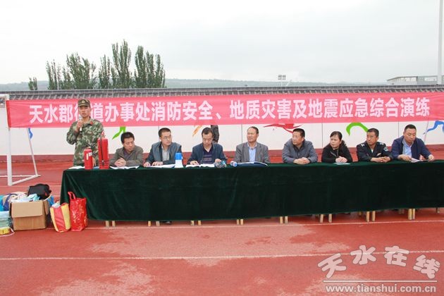 本次活動邀請區(qū)地震局、區(qū)國土局、區(qū)安監(jiān)局以及天水市田家炳中學的主要領(lǐng)導參加,街道、社區(qū)干部、街道民兵應急分隊、社區(qū)居民共計400余人參加演練。