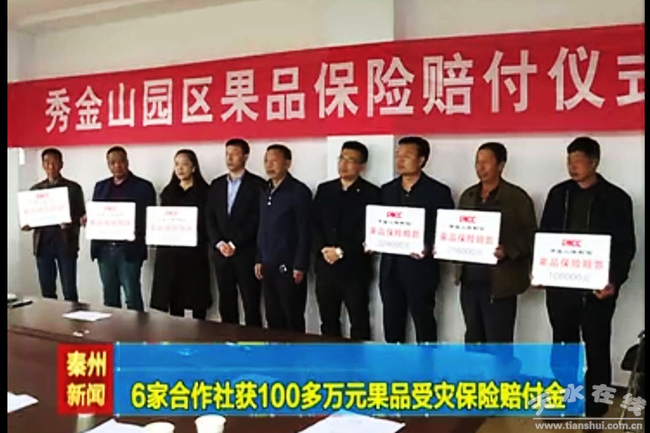 秦州區(qū)外宣辦5月18日訊(楊晨)近日,果品受災(zāi)保險(xiǎn)賠付儀式在秀金山園區(qū)舉行。秀金山園區(qū)6家受災(zāi)合作社獲得保險(xiǎn)賠付金共計(jì)100.98萬(wàn)元。