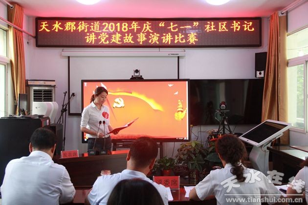 為紀(jì)念建黨97周年,進(jìn)一步推動街道各社區(qū)黨組織和廣大黨員深入貫徹落實(shí)習(xí)近平新時代中國特色社會主義思想和黨的十九大精神,推進(jìn)“兩學(xué)一做”學(xué)習(xí)教育常態(tài)化制度化,樹牢“四個意識”,增強(qiáng)“四個自信”,按照區(qū)委組織部《關(guān)于在全區(qū)開展紀(jì)念建黨97周年支部主題黨日活動的通知》(天秦區(qū)委辦〔2018〕105號)要求,6月25日,天水郡街道舉辦慶“七一”社區(qū)書記講黨建故事演講比賽。街道黨工委成員,機(jī)關(guān)站所負(fù)責(zé)人,各社區(qū)黨組織書記,街道機(jī)關(guān)、社區(qū)干部共計60余人參加會議。