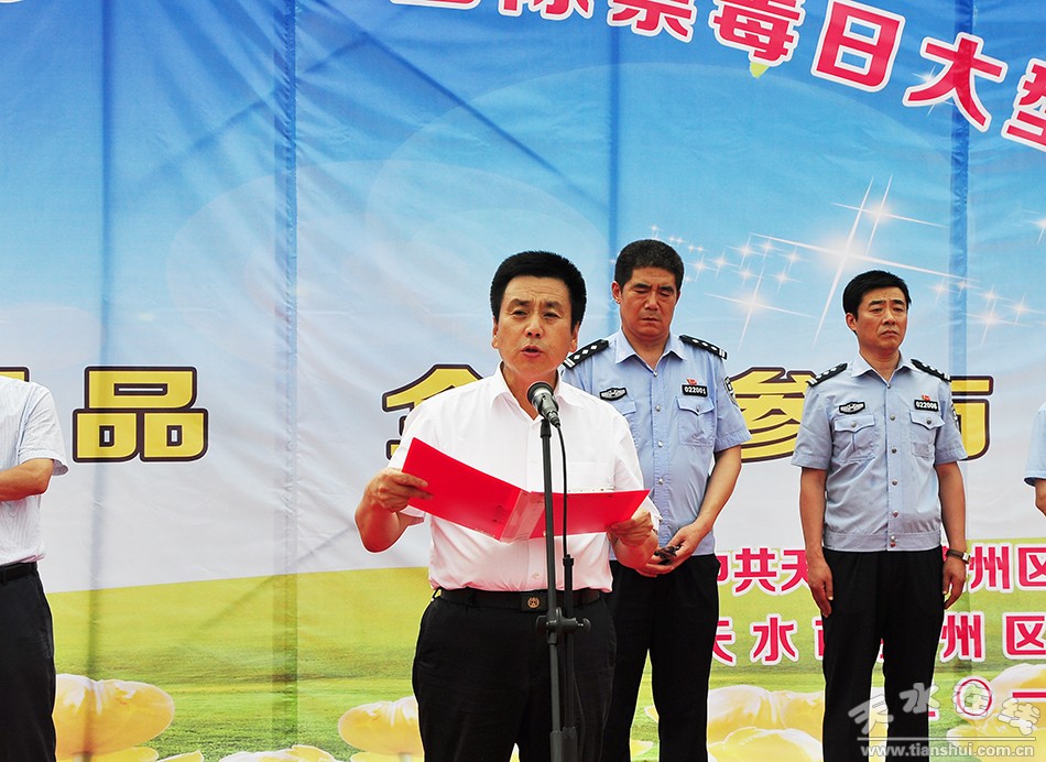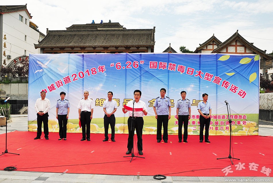 秦州區(qū)外宣辦6月27日訊(王利花)6月26日是第31個(gè)“國際禁毒日”,秦州區(qū)舉行了以“拒絕毒品,全民參與”為主題的 “6·26”國際禁毒日集中宣傳活動(dòng)。區(qū)委副書記、區(qū)長劉文璽出席活動(dòng)并致辭。