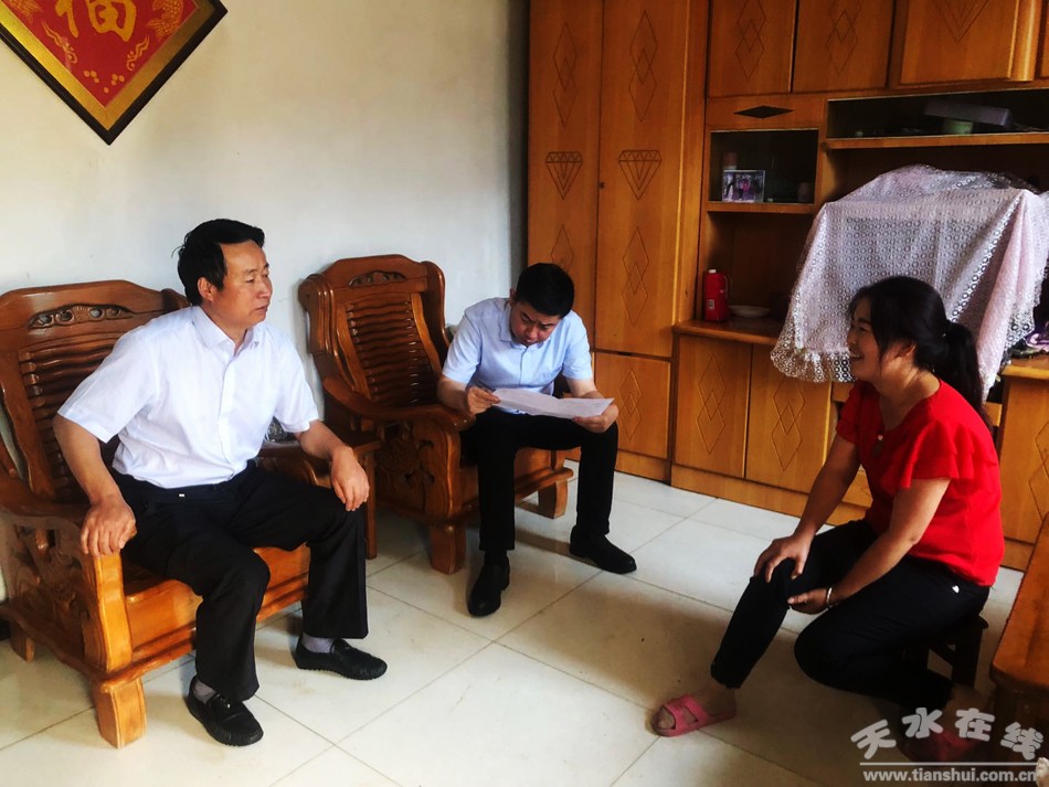 7月6日下午,秦州區(qū)副書記喬振華、副區(qū)長張維有帶領(lǐng)區(qū)民政、水利、國土等部門赴娘娘壩鎮(zhèn)柳林村、大門鎮(zhèn)白寨村和汪川鎮(zhèn)閆溝村,現(xiàn)場傳達(dá)了唐仁健省長在武山查看災(zāi)情時的講話精神和全市防汛減災(zāi)救災(zāi)保脫貧攻堅視頻會議精神,就當(dāng)前防汛工作進(jìn)行了隨機走訪督察。