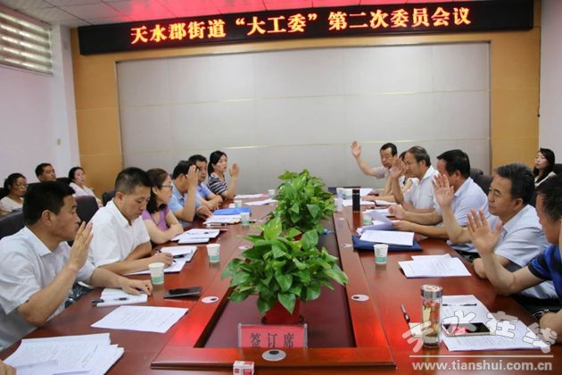 接著,召開“大工委”委員會議,表決通過大工委相關職責制度。會上街道黨政辦主任董斌同志宣讀了《天水郡街道“大工委”工作職責》、《天水郡街道“大工委”工作機制》、《天水郡街道“大工委”黨建聯(lián)席會議制度》、《天水郡街道“大工委”書記職責》、《天水郡街道“大工委”委員的主要職責》,各位委員對以上制度職責進行討論,舉手表決通過。