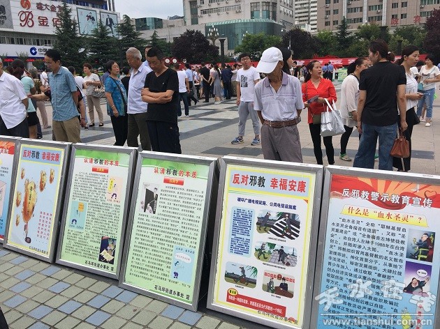 為進(jìn)一步提高居民群眾的反邪教意識(shí),認(rèn)識(shí)邪教的危害,切實(shí)增強(qiáng)自覺(jué)抵御邪教侵蝕的能力,營(yíng)造積極向上、健康和諧的氛圍,7月19日上午,結(jié)合市區(qū)“反邪教我代言 陽(yáng)光照隴原”主題宣傳活動(dòng),石馬坪街道在龍城廣場(chǎng)積極開(kāi)展了反邪教集中宣傳活動(dòng)。