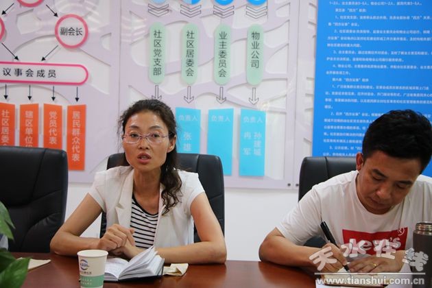 天水郡街道藉水北路社區(qū)成立于2017年2月,成立一年多來,藉水北路社區(qū)籌備組以黨的十八屆五中、六中全會和黨的十九大,十九屆二中、三中全會精神為指導(dǎo),在天水郡街道黨工委、辦事處的正確領(lǐng)導(dǎo)下,以政治理論學(xué)習(xí)為引領(lǐng),以社區(qū)陣地建設(shè)為重點,以建立居民基本信息數(shù)據(jù)庫為切入點,以安全生產(chǎn)、安保維穩(wěn)、衛(wèi)生整治、宣傳教育等工作為抓手,社區(qū)籌備和各項工作開展順利。