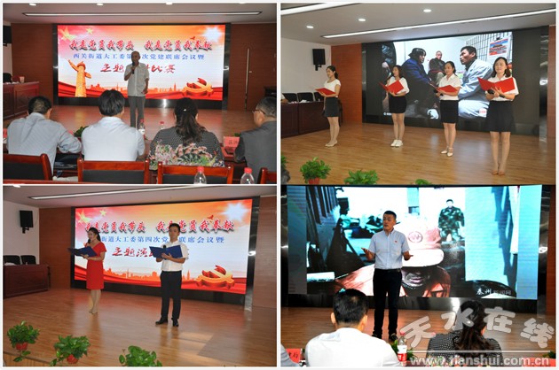 首先,召開了西關(guān)街道大工委第四次黨建聯(lián)席會(huì)議,街道大工委書記于海燕同志發(fā)出倡議,希望全體大工委成員單位和在職黨員要以此次主題演講比賽為契機(jī),把激發(fā)出的熱情內(nèi)化于心,外化于行,牢記使命,加強(qiáng)學(xué)習(xí),提升素質(zhì),為轄區(qū)居民群眾提供優(yōu)質(zhì)高效服務(wù),不斷推進(jìn)全街工作再上新臺(tái)階,為創(chuàng)建全國(guó)文明城市貢獻(xiàn)自身力量。