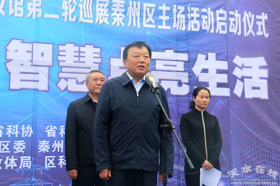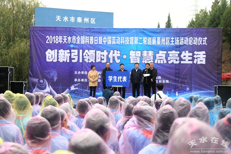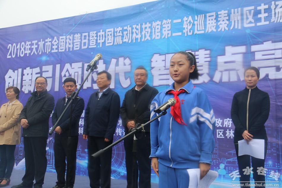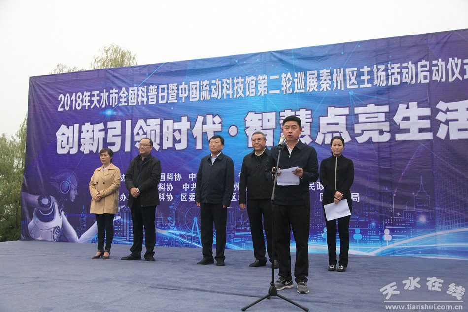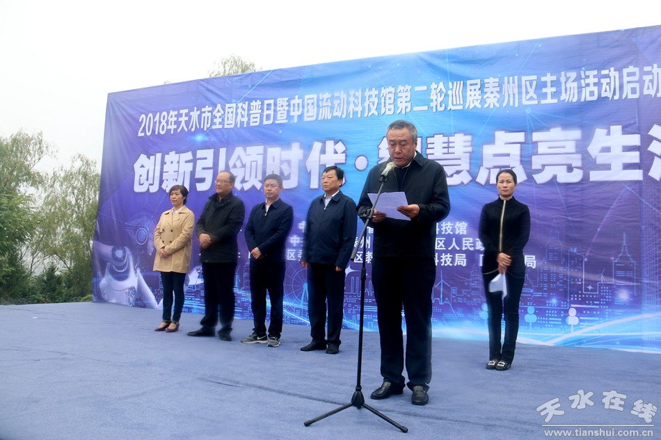 啟動(dòng)儀式上,雷鳴宣布2018年全國(guó)科普日暨中國(guó)流動(dòng)科技館第二輪巡展天水市秦州區(qū)主場(chǎng)活動(dòng)啟動(dòng)。
