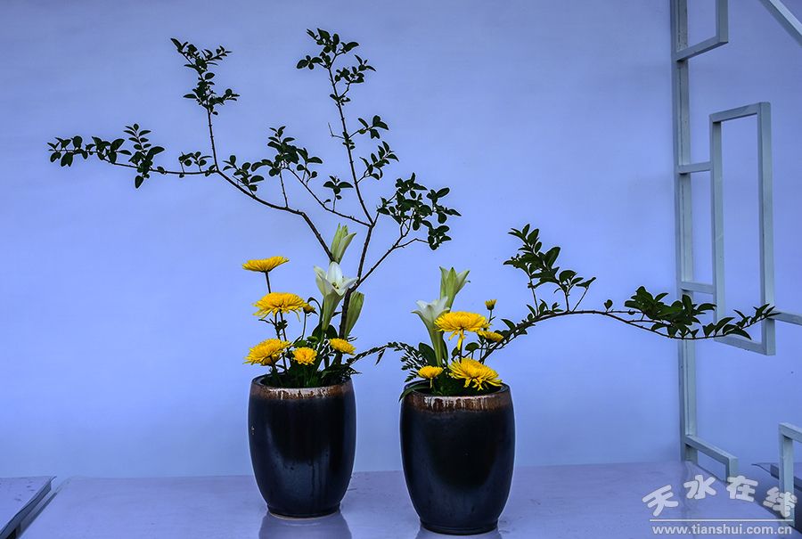 西廣場牌坊處結(jié)合往屆菊展主題,以梅、蘭、竹、菊四君子剪紙結(jié)合立體菊藝、6組手工菊瓷展示秦州坊間極具地方特色的菊之文化。插花展示區(qū)設(shè)置16個展位,每個展位以鏤空隔板為界分成獨立空間,以紗幔作以裝飾,不同展區(qū)展示不同主題的插花、切花、干花等,如:色彩繽紛的切菊插花,極具意境的中國式插花,以假亂真的干花,意韻悠長的盆景,以色彩斑斕的園林手法,讓習(xí)近平總書記十九大報告中“人民對美好生活的向往,就是我們的奮斗目標(biāo)”落到實處,走進天水市民的心中。
