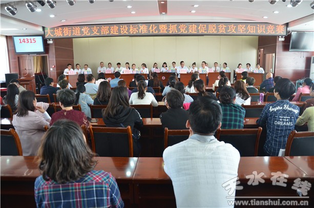 為深入學(xué)習(xí)貫徹習(xí)近平總書記關(guān)于脫貧攻堅(jiān)的一系列重要指示,加快支部建設(shè)標(biāo)準(zhǔn)化工作進(jìn)程,進(jìn)一步激發(fā)廣大黨員干部在打贏脫貧攻堅(jiān)戰(zhàn)、全面決勝小康社會建設(shè)中的熱情干勁,推動支部建設(shè)標(biāo)準(zhǔn)化工作向縱深發(fā)展,9月20日下午,大城街道組織全體黨員干部開展了一次抓黨建促脫貧攻堅(jiān)暨黨支部建設(shè)標(biāo)準(zhǔn)化知識競賽活動。