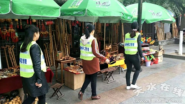 三是加強(qiáng)重點(diǎn)區(qū)域的市容環(huán)境秩序管理。針對(duì)中華東西路步行街、龍城廣場(chǎng)、伏羲城廣場(chǎng)、成紀(jì)兒童公園等游客密集區(qū)域,環(huán)衛(wèi)執(zhí)法管理人員對(duì)車輛亂停亂放、步行街內(nèi)倚門經(jīng)商、小攤點(diǎn)亂擺情況進(jìn)行專項(xiàng)整治,對(duì)亂設(shè)攤點(diǎn)和流動(dòng)攤點(diǎn)進(jìn)行了徹底清理,對(duì)小商販經(jīng)營(yíng)行為進(jìn)行了全面規(guī)范,并杜絕了小商販攆著游客兜售情況的發(fā)生,有效保障了節(jié)日期間步行街的市容秩序。