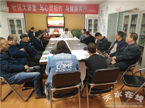 為了增強我轄區(qū)居民心理健康保健意識,提升家庭幸福指數(shù),促進社會和諧,10月23日,秦州區(qū)大城街道共和巷社區(qū)舉辦了主題為“與心靈相約 與健康同行”心理健康知識講座,特邀共和巷社區(qū)衛(wèi)生服務(wù)中心何建勛主任為居民講授心理健康知識。