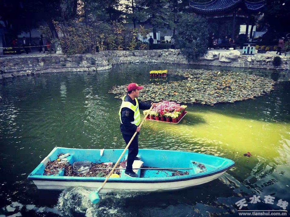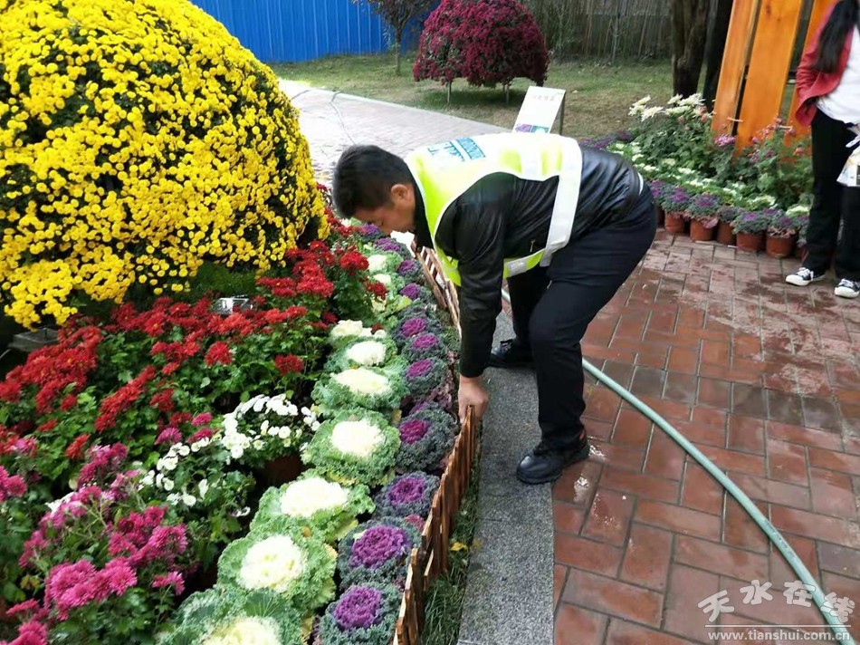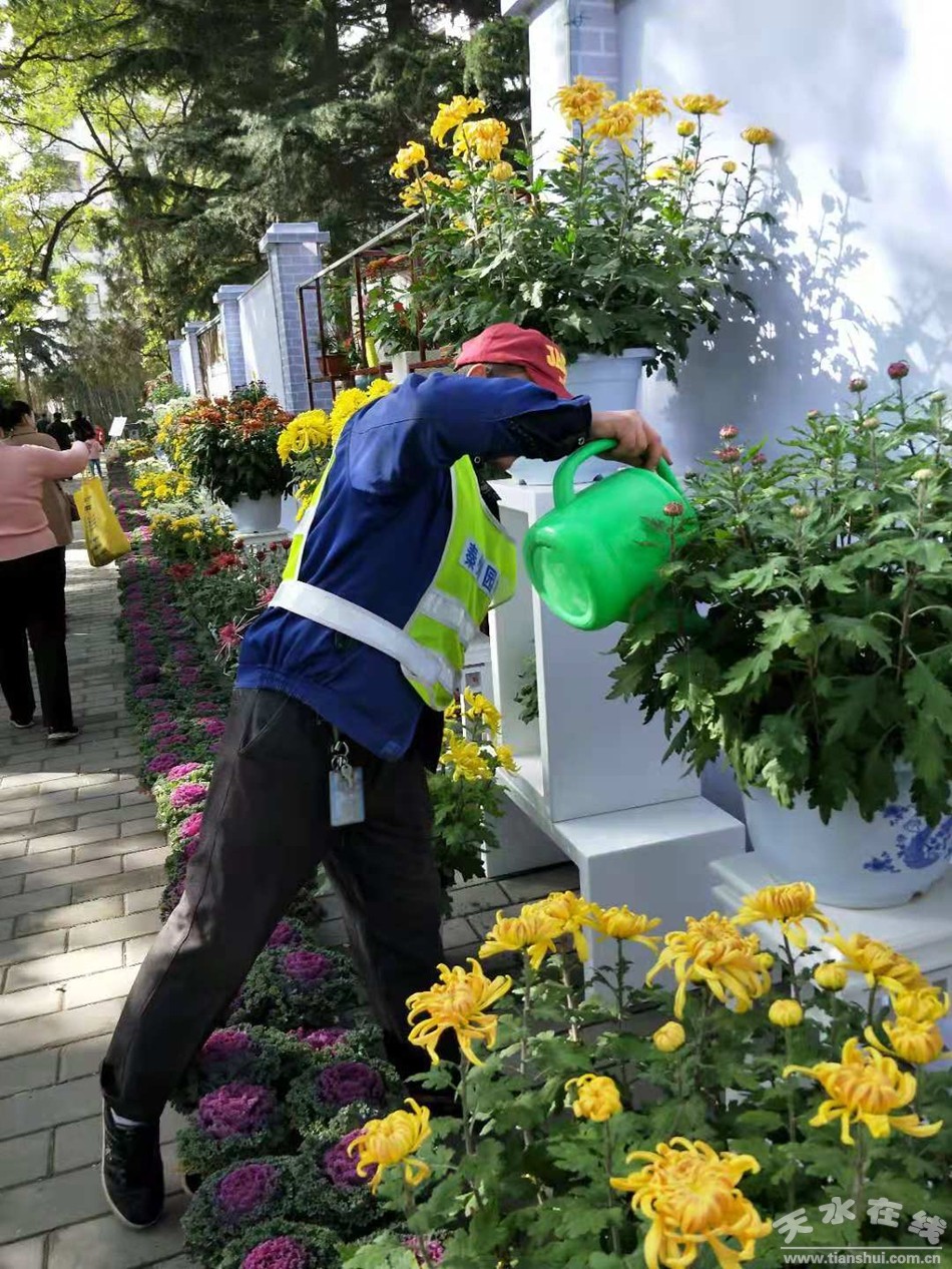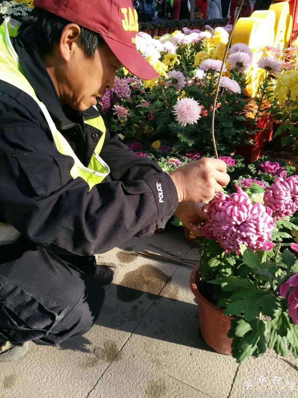 菊展期間,為了提供文明和諧的游園環(huán)境,園林職工每天都要對(duì)5萬(wàn)余盆的花卉進(jìn)行日常養(yǎng)護(hù)、湖面垃圾清理、花藝區(qū)的整理修護(hù)、花卉更換,并提供服務(wù)咨詢、菊展介紹。為保障安全的游園環(huán)境,設(shè)置安全警戒線,疏導(dǎo)游人,專門設(shè)置視頻監(jiān)控系統(tǒng),由專人進(jìn)行管理,進(jìn)一步加強(qiáng)24小時(shí)值班制度,特別是夜間安保及管理等相關(guān)工作。在中山亭設(shè)置揮毫潑墨的場(chǎng)所,每天為市民贈(zèng)送書(shū)畫(huà)作品,安排專人進(jìn)行詩(shī)詞朗誦,讓菊花的馨香走進(jìn)每一個(gè)市民的生活,讓菊花絢麗多姿的色彩扮靚秦州的秋天。