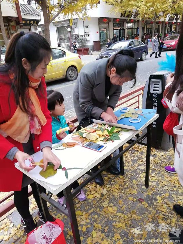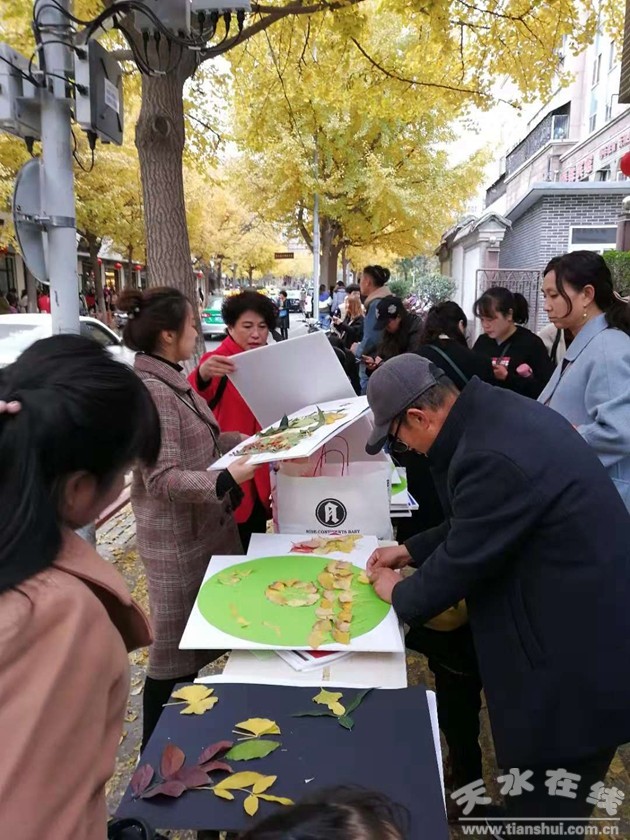 11月3日,區(qū)文化館組織的“詩意秦州”樹葉創(chuàng)意作品展在黃金大道舉行。40余名少年兒童在家長的陪同下,就地取材,現(xiàn)場作畫,以秦州的自然人文景觀為創(chuàng)作原型,親手創(chuàng)作出一幅幅充滿童趣的樹葉畫,在欣賞美景之余,激發(fā)少年兒童熱愛家鄉(xiāng),建設(shè)家鄉(xiāng)的熱情;顒蝇F(xiàn)場吸引了不少行人駐足觀看,充滿創(chuàng)意的作品為黃金大道增添一抹活力和亮色。作為黃金大道系列文化活動之一,此后將會有更多展示秦州歷史文化的活動陸續(xù)開展,豐富市民的精神文化生活。