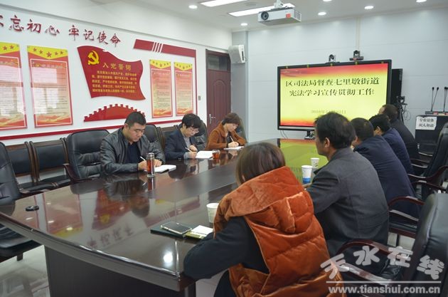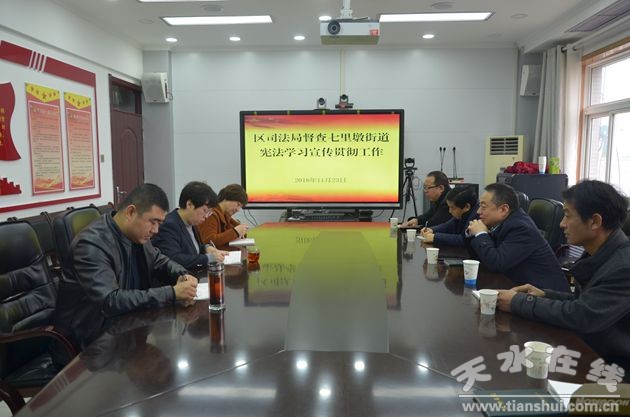 11月23日上午,秦州區(qū)司法局局長王煊帶領(lǐng)區(qū)司法局督查組一行深入七里墩街道,就街道憲法學(xué)習(xí)宣傳貫徹工作進(jìn)行督導(dǎo)檢查。街道黨工委書記胡莉文、辦事處主任于景瑞、副主任杜玉萍等陪同督查。