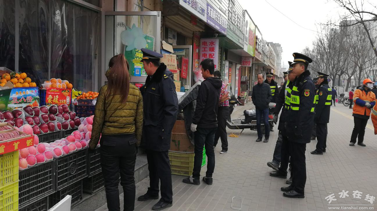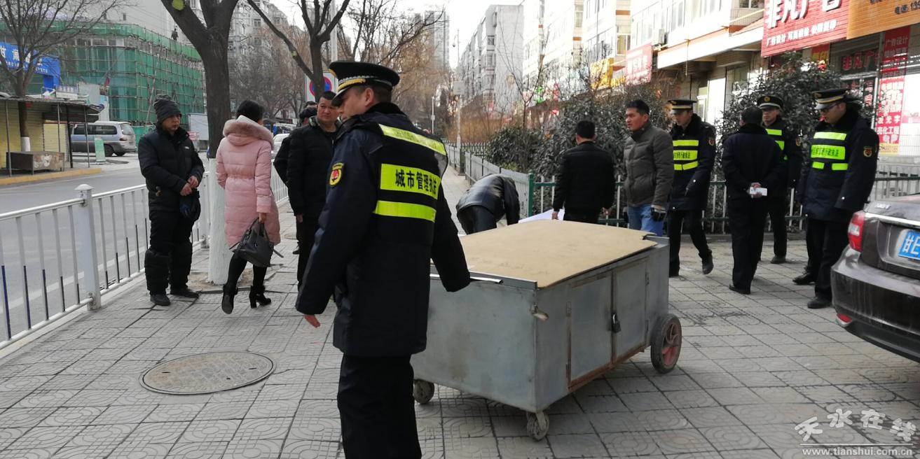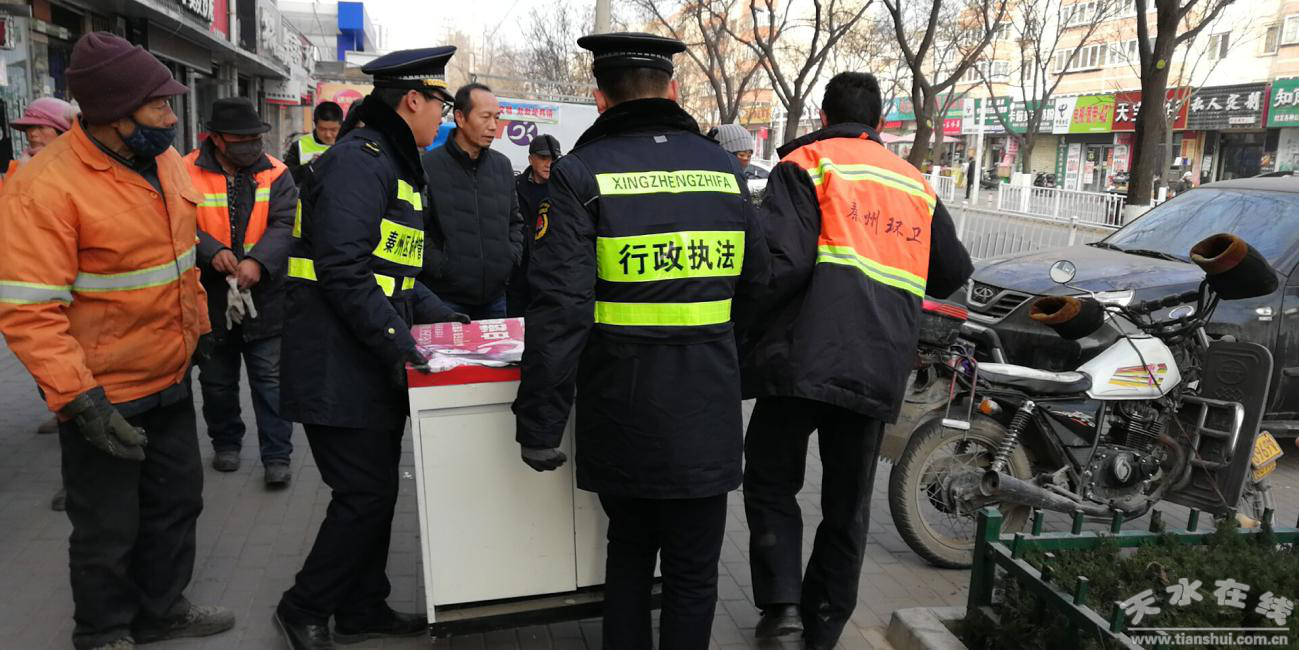 為進(jìn)一步提升城市市容環(huán)境衛(wèi)生,改善城市人居環(huán)境,1月17日,秦州區(qū)執(zhí)法局西關(guān)中隊(duì)聯(lián)合永慶路社區(qū)、食藥局、工商局、公安、環(huán)衛(wèi)對(duì)永慶西路店外經(jīng)營(yíng)和亂堆亂放的違規(guī)行為進(jìn)行了集中整治。