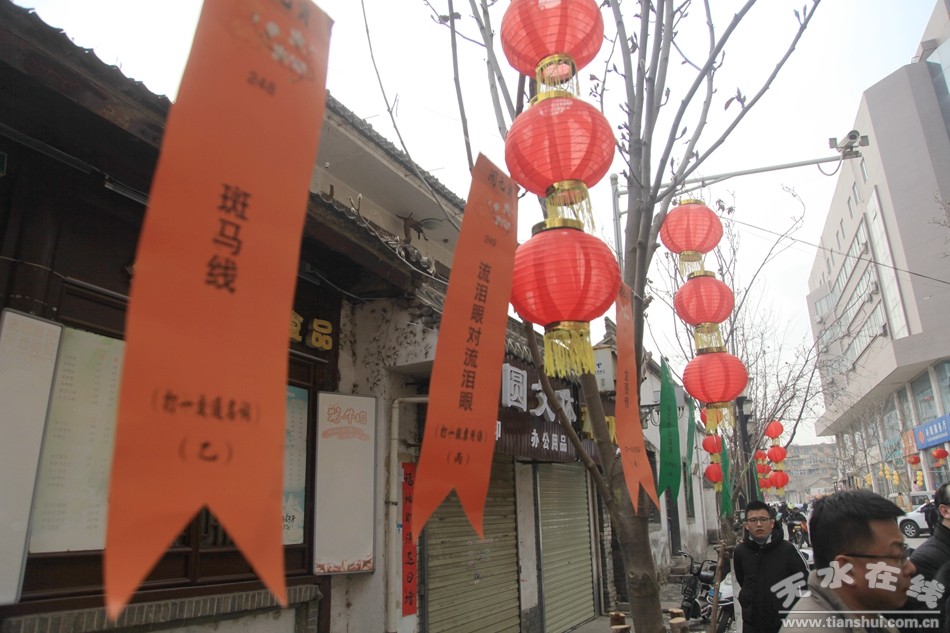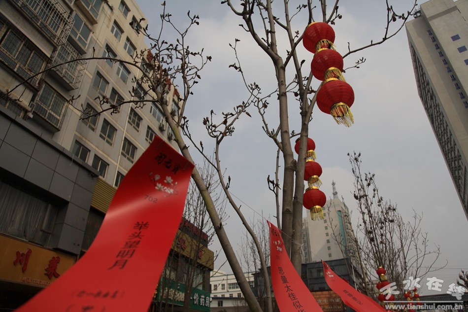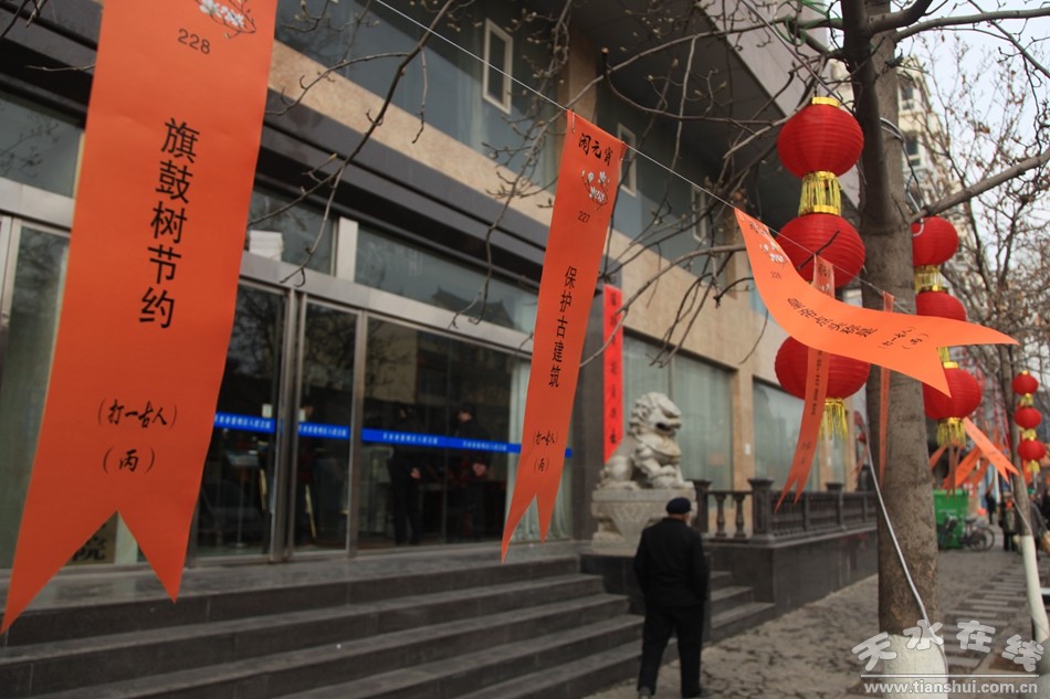 據(jù)了解,本次活動(dòng)共懸掛手工花燈200余盞,彩燈2000余盞,征集懸掛燈謎7000余條。所有燈謎按類別氛圍7個(gè)板塊,分別用赤橙黃綠青藍(lán)紫七色標(biāo)識(shí)。今晚亮燈之后,傳統(tǒng)的彩燈及燈謎將襯托自由路古巷內(nèi)的古建古樹(shù),彰顯出古城秦州的古韻風(fēng)采,帶給廣大市民一種懷舊的賞玩體驗(yàn)。