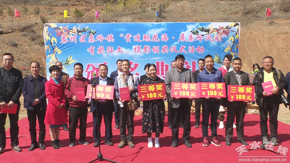 秦州區(qū)融媒體中心4月12日訊 (記者 趙雅琪 劉武峰) 4月11日,首屆“賞連翹花!ふ骨貛X風(fēng)采”有獎(jiǎng)?wù)魑臄z影頒獎(jiǎng)典禮在秦州區(qū)秦嶺鎮(zhèn)石家河村舉行,為獲獎(jiǎng)作者頒獎(jiǎng)。