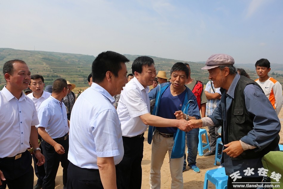(圖為天水市委常委、秦州區(qū)委書記雷鳴,區(qū)委副書記、區(qū)長劉文璽看望慰問劇組人員)