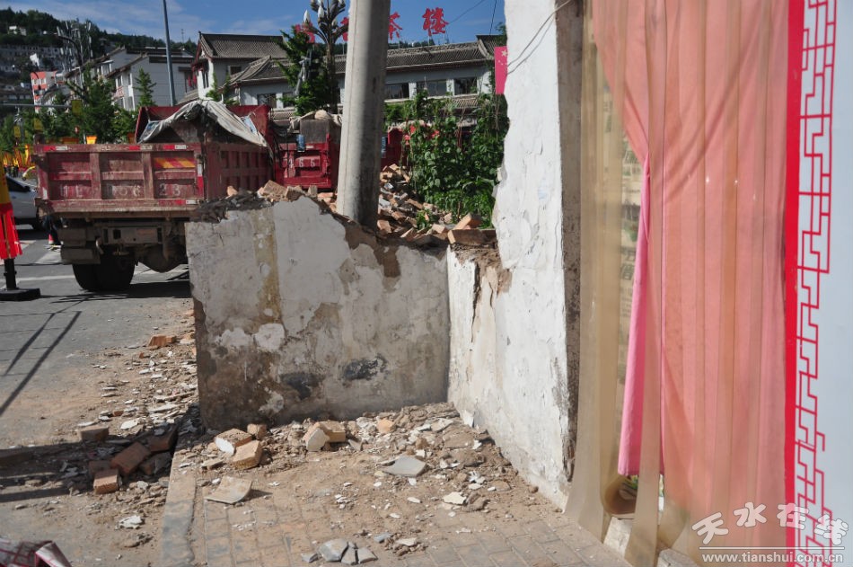(當天下午對影響交通安全的圍墻進行拆除,圖為拆除前)