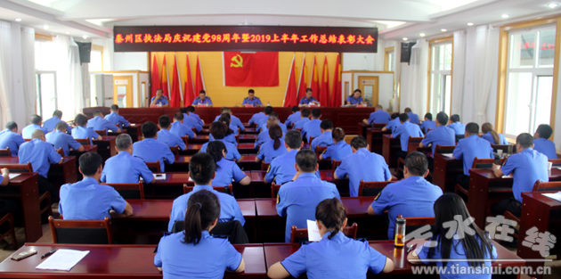 為回顧黨的光輝歷史,傳承黨的優(yōu)良傳統(tǒng),牢記黨的初心使命,近日,秦州區(qū)綜合執(zhí)法局紀念中國共產(chǎn)黨成立98周年暨“七一”表彰大會隆重舉行。黨組班子成員、10個基層黨支部黨員代表共80余人參加了會議。