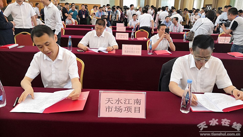秦州區(qū)委常委、區(qū)政府副區(qū)長趙輝和區(qū)招商局負責人分別和項目投資方簽約。