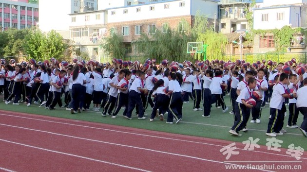 在天水市六中的操場記者看到,來自人民路小學(xué)的600名學(xué)生手持足球、籃球、排球、陸續(xù)擺出“中國夢”、“70周年”等不同造型,慶祝中華人民共和國成立70周年。市六中的500名初中生組成的表演團(tuán)隊進(jìn)行射箭、射禮表演。節(jié)目場面大氣恢弘,音樂莊重愉快,讓人耳目一新。