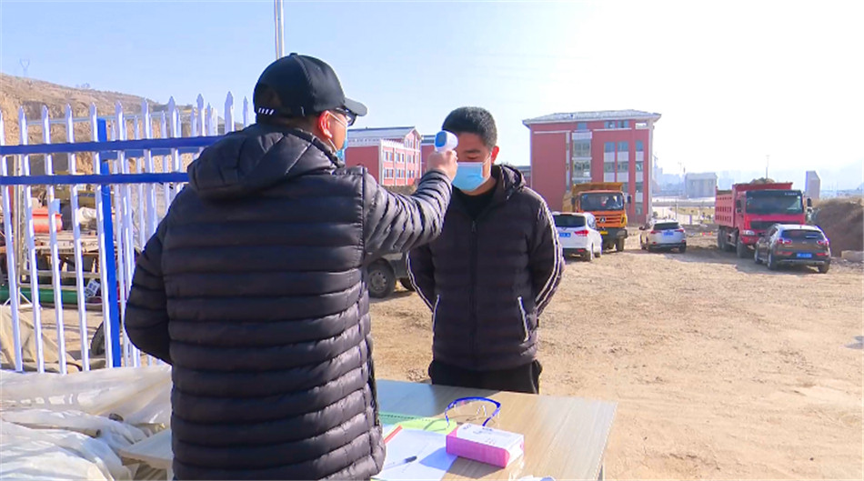 在機場南路項目建設(shè)現(xiàn)場,挖土機、運輸車輛等建筑機械不停運轉(zhuǎn),工人們在經(jīng)過體溫檢測和消毒后,陸續(xù)進入施工現(xiàn)場。