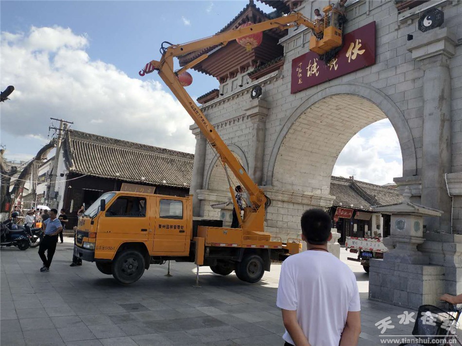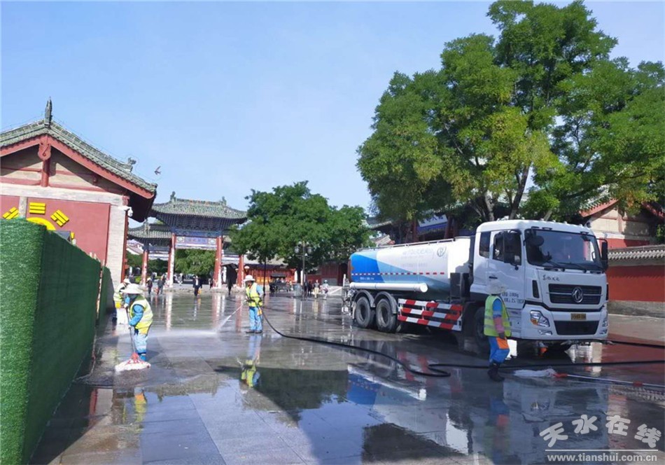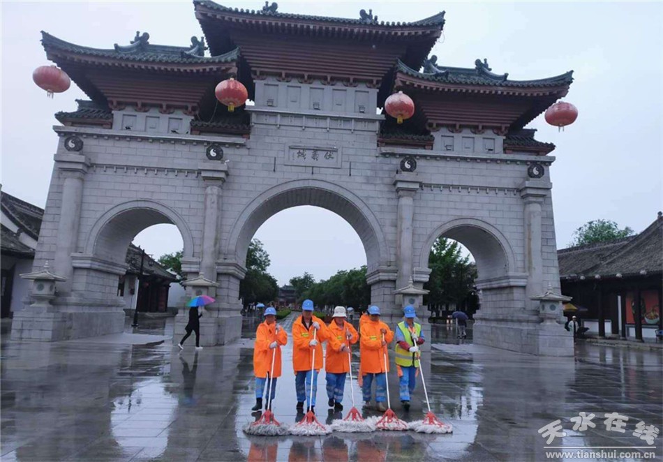 營造氛圍全力做好伏羲城廣場及周邊環(huán)境衛(wèi)生保障。采取人機結合的方式,對伏羲城牌坊、路面動采用高壓沖洗車進行沖洗,對地磚污漬、排水板口油漬采用自制工具進行鏟除,對果皮箱污漬、沿街石凳灰塵、小品設施進行全面沖洗和擦洗。同時,對伏羲城內(nèi)的廊庭立柱、條凳、走廊、仿古門窗、墻面進行了統(tǒng)一的油飾粉刷,有力提升了伏羲城步行街的整體形象和城市品位。