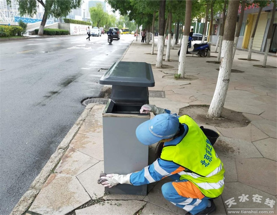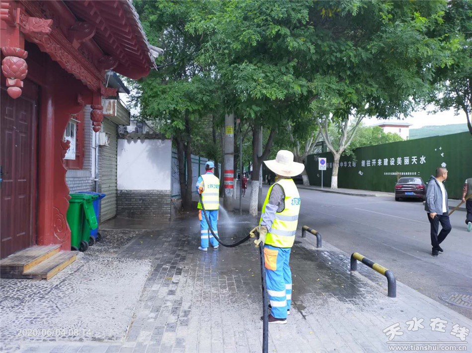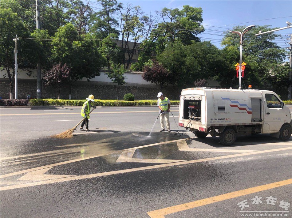 聚焦市容環(huán)境精細化作業(yè)提升城市品位。按照“無縫隙、全覆蓋、精細化、全對接”的要求,對墻根道沿、小花壇、門店臺階、配電箱背后、人行道、樹坑周邊加大清掃保潔力度。同時,加大對城市背街小巷、城鄉(xiāng)結合部及衛(wèi)生死角垃圾的清掃清運力度,利用小型多功能清洗車7臺、高壓沖洗車2臺,對城市重點區(qū)域、路面、地磚、排水板口、道沿進行不間斷循環(huán)沖洗作業(yè)。從6月8日起每天對伏羲廟周邊路段、城市重點路段每天進行不低于4次的清洗保潔作業(yè),全力抓好伏羲廟周邊、城區(qū)主街道、城市重點公共區(qū)域的環(huán)境衛(wèi)生綜合治理,著力提升城市品味。