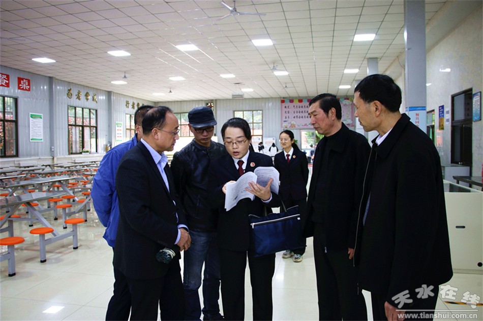 督查組一行先后來到天水市逸夫?qū)嶒炛袑W、天水市建二小學、天水市第五中學、天水市第一中學、天水市職業(yè)學校、秦州區(qū)藉口中學及校外培訓機構(gòu)阿斯頓英語學校,通過實地檢查、聽取匯報、查閱資料、座談交流等方式,對學校是否圍繞“一號檢察建議”開展防性侵害、防校園欺凌等法治教育和自護教育;是否落實學校教職員工入職準入制度、開展師德師風教育;是否嚴格校園門衛(wèi)制度、寄宿生學校宿舍管理制度、學校食堂管理制度以及是否建立健全校園安全相關(guān)機制、有無校園安全應(yīng)急處置預(yù)案、校園監(jiān)控系統(tǒng)等校園安全建設(shè)重點方面、重點環(huán)節(jié)進行專項督查。