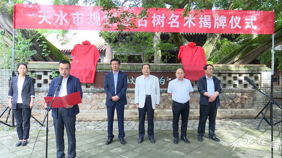儀式上,市住建局負(fù)責(zé)人介紹了天水市規(guī)劃區(qū)內(nèi)古樹名木普查掛牌保護(hù)情況。隨后,市領(lǐng)導(dǎo)為天水市一號(hào)古樹——春秋古柏揭牌,拉開了全市古樹名木掛牌保護(hù)的序幕。