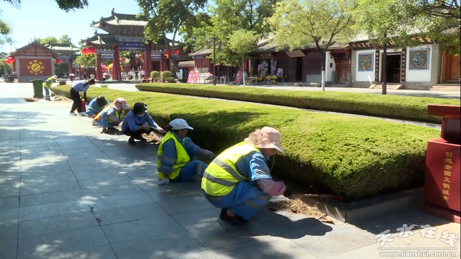“把綠化帶里面的枯枝敗葉、垃圾進(jìn)行了徹底的清掏。每天對(duì)背街小巷和街道進(jìn)行沖洗,車開不進(jìn)去的地方把管子接上進(jìn)行清洗,對(duì)不文明坐姿、隨意攀爬、亂扔亂吐這些現(xiàn)象都進(jìn)行了管理!鼻刂輩^(qū)城鄉(xiāng)環(huán)衛(wèi)治理服務(wù)中心伏羲城步行街管理辦一分隊(duì)分隊(duì)長(zhǎng)孫麗娟說(shuō)。