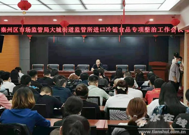 根據(jù)當(dāng)前多地通報(bào)進(jìn)口冷鏈?zhǔn)称吠獍b新冠檢測呈陽性,結(jié)合轄區(qū)檢查中發(fā)現(xiàn)進(jìn)口冷鏈?zhǔn)称反嬖谶\(yùn)輸儲存不規(guī)范、不按規(guī)定進(jìn)行報(bào)備及不按要求進(jìn)入進(jìn)口冷鏈?zhǔn)称繁O(jiān)管總倉“體外循環(huán)”等突出問題,為有效防范秋冬季新冠疫情通過進(jìn)口冷鏈?zhǔn)称穫鞑ワL(fēng)險(xiǎn),阻斷疫情傳播渠道,切實(shí)保障人民群眾生命健康安全,8月31日,秦州區(qū)市場監(jiān)管局大城街道監(jiān)管所召開了由餐飲企業(yè)、學(xué)校托幼機(jī)構(gòu)食堂、商場超市、食品批發(fā)負(fù)責(zé)人參加的冷鏈?zhǔn)称穼m?xiàng)整治工作會議。