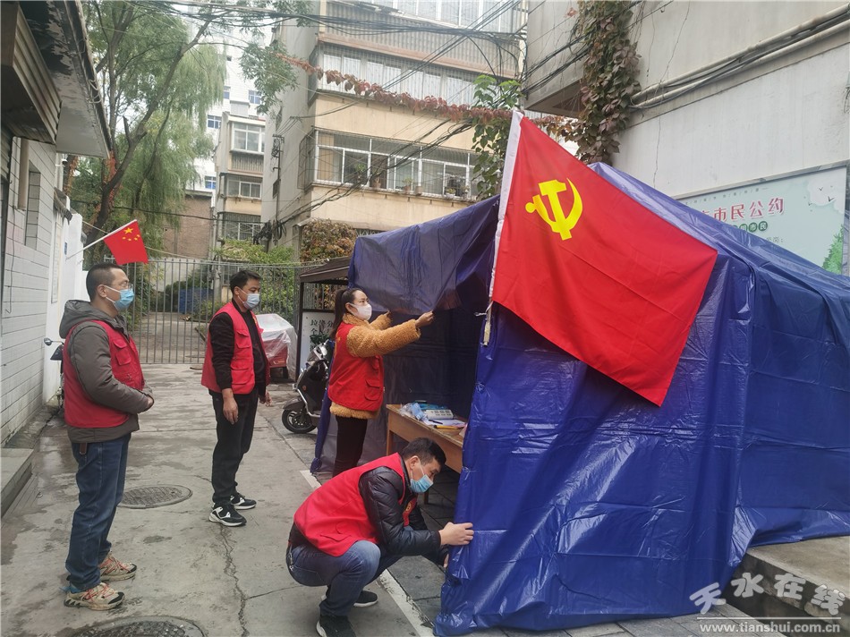 秦州區(qū)機關(guān)事務(wù)服務(wù)中心組織黨員干部下沉“雙報到”結(jié)對共建大街街道進步巷社區(qū),來到三無小區(qū)執(zhí)勤點,迅速搭建疫情防控值守站,設(shè)立測溫、登記、掃碼點,在小區(qū)進出口張貼疫情防控通告,勸導(dǎo)大家非必要不出門,對所有出入小區(qū)居民進行檢查登記,全力構(gòu)筑疫情防控屏障。