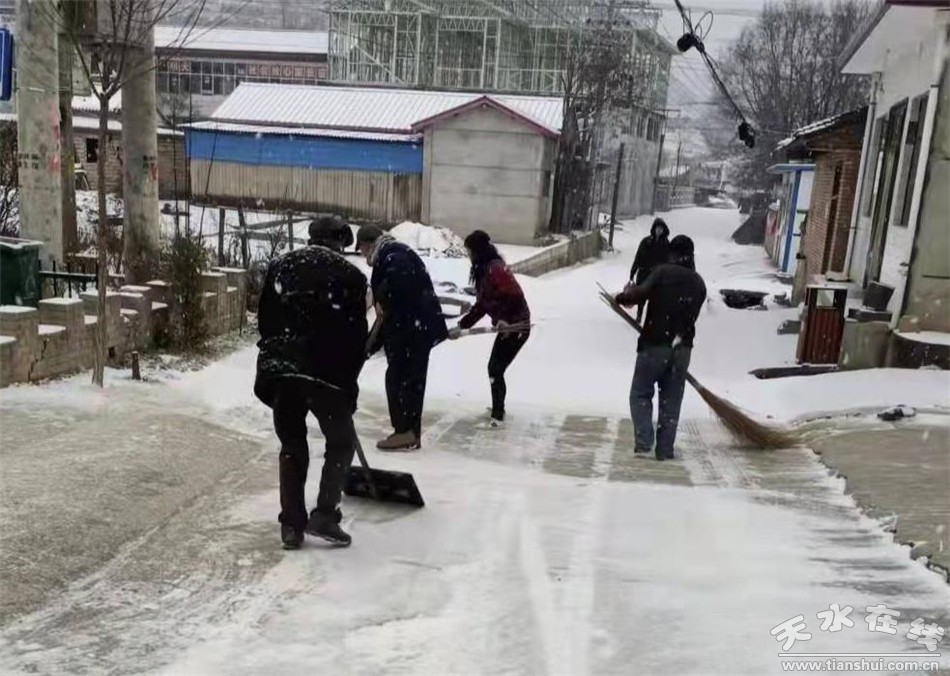 天水鎮(zhèn)各村村干部帶頭,組織公益性崗位人員和村民,不畏天寒地滑,拿著鐵鍬掃帚,齊心協(xié)力對進(jìn)村主干道,村內(nèi)巷道,房前屋后,進(jìn)行掃雪除冰。同時,各村交通勸導(dǎo)員及時上崗,設(shè)立勸導(dǎo)站,對駕車或騎車出行的村民進(jìn)行了勸返,避免了交通安全事故的發(fā)生。