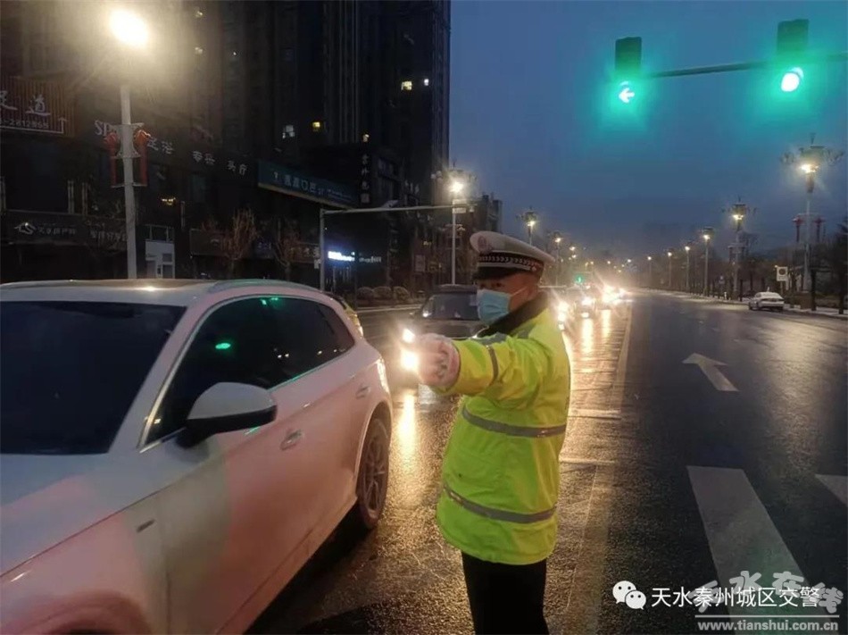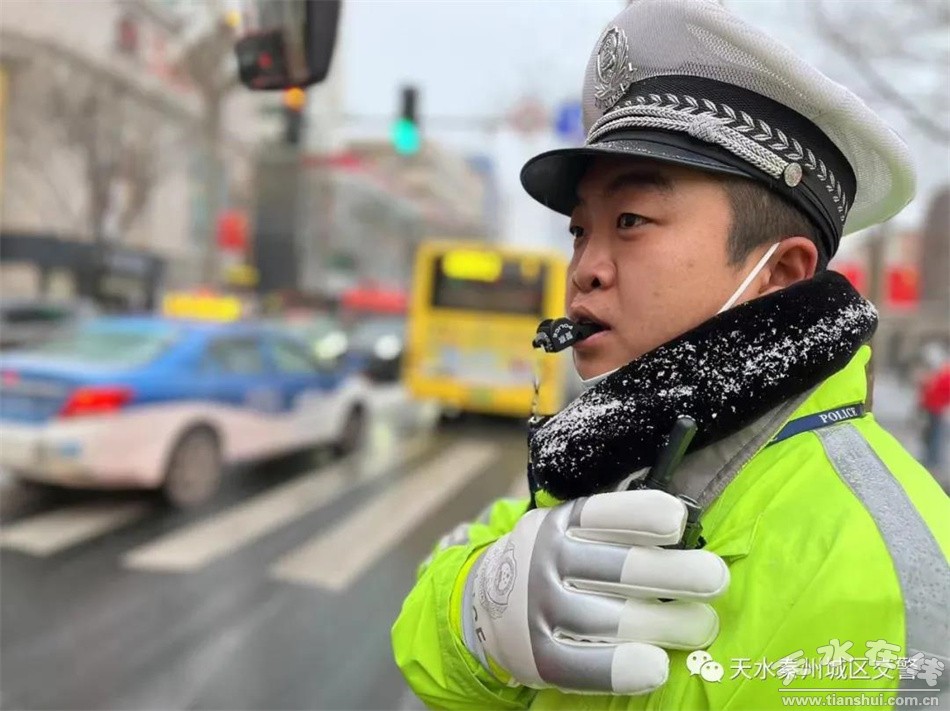 12月31日,秦州城區(qū)大范圍降雪,道路濕滑,能見度低,給車輛和行人出行帶來(lái)極大不便,在帶來(lái)交通危害的同時(shí),也給路面執(zhí)勤工作加大了難度和壓力。為最大限度預(yù)防和減少交通事故發(fā)生,秦州公安分局城區(qū)交警大隊(duì)以雪情為警情,及時(shí)開啟惡劣天氣交通管理應(yīng)急預(yù)案,不畏風(fēng)雪,堅(jiān)守在一線,指揮交通,保障著廣大交通參與者的通行安全。