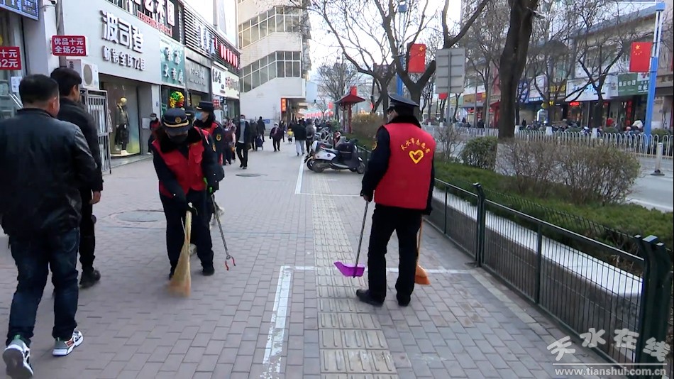 12月29日,記者在大眾北路看到,秦州區(qū)城市管理綜合執(zhí)法局的志愿者們手拿掃帚、夾子等清掃工具,對(duì)路面垃圾、煙頭、綠化帶內(nèi)的枯枝敗葉進(jìn)行清掃和撿拾。同時(shí),志愿者還勸導(dǎo)行人遵守交通規(guī)則,不闖紅燈,非機(jī)動(dòng)車駕駛員要按照施劃的區(qū)域停放車輛。