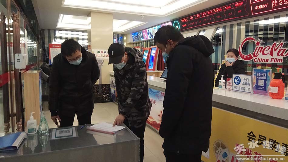 秦州區(qū)融媒體中心1月5日訊(記者 龐貴琦 )1月4日,秦州區(qū)委宣傳部聯(lián)合天水市文化市場(chǎng)綜合行政執(zhí)法隊(duì)組成督察組,對(duì)全區(qū)影院常態(tài)化疫情防控各項(xiàng)措施落實(shí)情況進(jìn)行了督查。