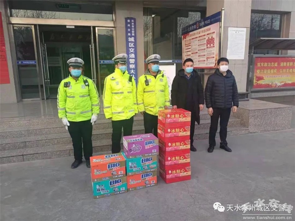 1月10日,時(shí)值農(nóng)歷“臘八節(jié)”,在第二個(gè)“中國人民警察節(jié)”來臨之際,天水市第三中學(xué)對(duì)秦州公安分局城區(qū)交警大隊(duì)一線民警進(jìn)行慰問,并送去慰問品,為他們送去誠摯的問候和節(jié)日的祝福。