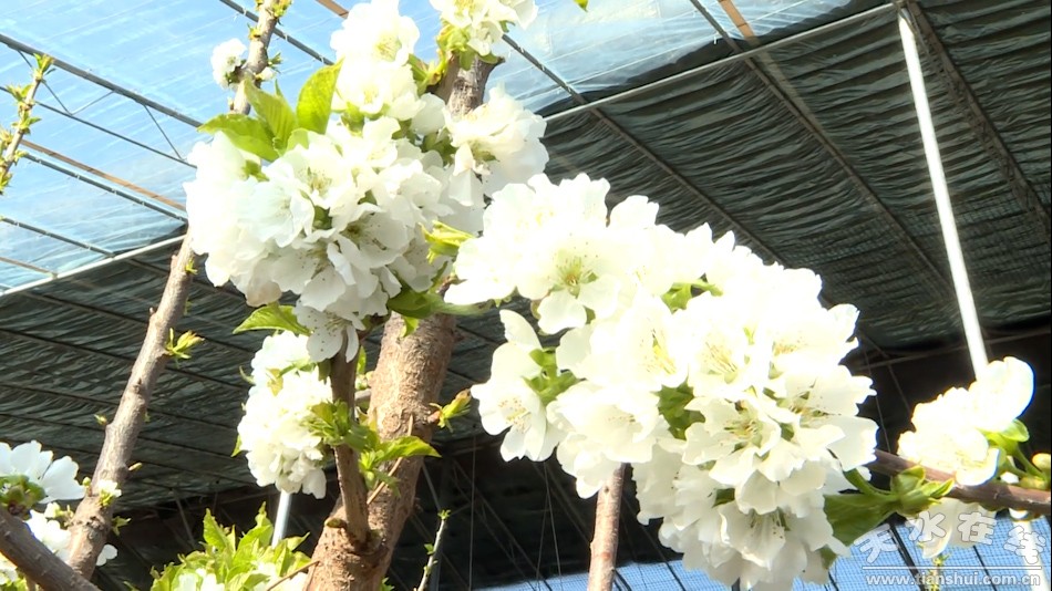 與此同時(shí),在楊家寺鎮(zhèn)大豐農(nóng)業(yè)大櫻桃種植基地的大棚里,成排的櫻桃樹上,朵朵櫻桃花競相開放,一團(tuán)團(tuán)、一簇簇雪白的櫻桃花掛滿枝頭,芳香滿園,一派生機(jī)盎然的景象。大豐農(nóng)業(yè)大櫻桃種植基地的負(fù)責(zé)人李欣告訴記者,設(shè)施化大櫻桃要比露地大櫻桃提前一個(gè)到兩個(gè)月上市,每斤可賣到100元,目前他們基地已建成9座溫室大棚。