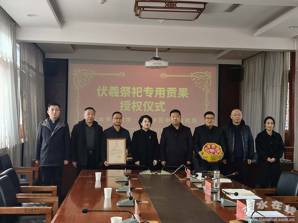 秦州區(qū)融媒體中心2月15日訊 (記者 崔磊)2月14日,由天水市博物館和中梁鎮(zhèn)政府共同舉辦的伏羲祭祀專用貢果授權(quán)儀式在市博物館舉行。市博物館館長劉玉璞、秦州區(qū)政府副區(qū)長景怡參加授權(quán)儀式。