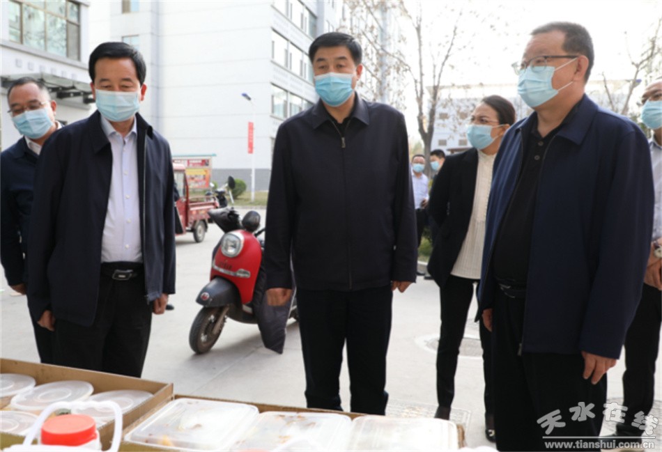 劉天波一行來(lái)到天水師范學(xué)院,重點(diǎn)查看了學(xué)校門(mén)衛(wèi)、食堂和宿舍等重點(diǎn)場(chǎng)所的防疫措施、環(huán)境消殺、防疫物資儲(chǔ)備等情況,詳細(xì)了解了疫情防控期間門(mén)崗值班值守、出入校園人員管控、師生核酸檢測(cè)、生活及物資保障、日常教學(xué)等工作,并就全面抓好學(xué)校疫情防控工作提出了意見(jiàn)和建議。