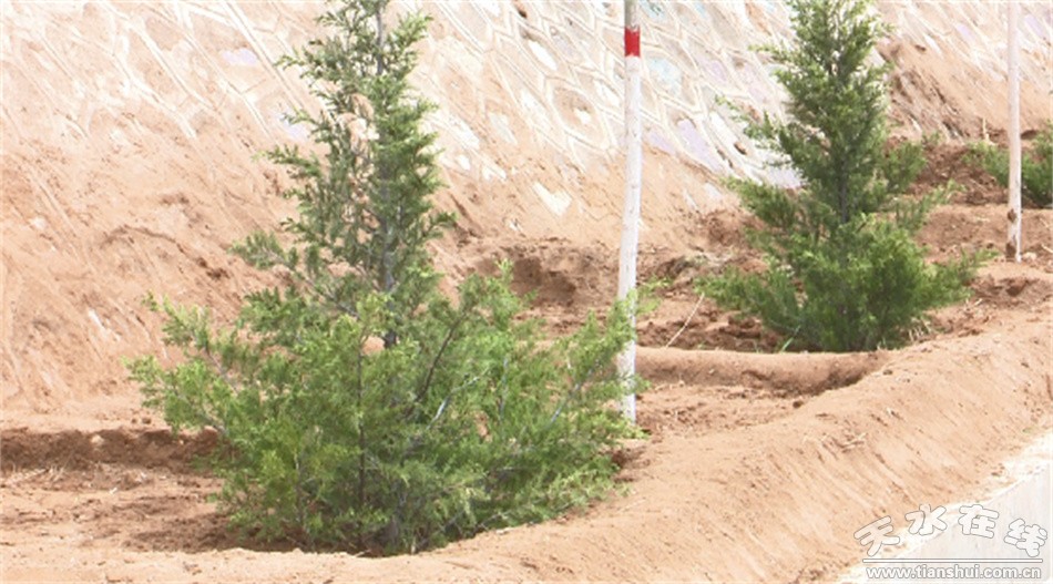 在馬鞍山梁綠化現(xiàn)場,一排排小樹苗分布在道路兩側(cè),施工人員正在對剛栽植的樹苗進行填土,在樹苗之間建成蓄水網(wǎng)格。村干部告訴記者,前期機械化作業(yè)已基本完成,下一步將對新栽樹苗進行施肥、澆水、覆膜等精細化作業(yè)。