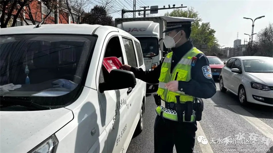 自新型冠狀病毒疫情發(fā)生以來,秦州城區(qū)交警大隊高度重視,在全力以赴扎實做好戰(zhàn)疫情、保穩(wěn)定的同時,堅持道路交通管理工作不放松,維護轄區(qū)道理交通秩序安全、暢通。疫情發(fā)生以來,秦州公安分局城區(qū)大隊設(shè)立24小時疫情防控執(zhí)勤點,對進入城區(qū)的車輛進行檢查,積極配合聯(lián)防聯(lián)控工作要求,對駕乘人員逐一嚴查;加大宣傳力度,通過微信公眾號、微博等媒介提醒群眾使用交管12123手機APP辦理車駕管、簡易違章處理等業(yè)務(wù),不斷增強群眾的自我防護意識和能力,減少外出感染的風險。