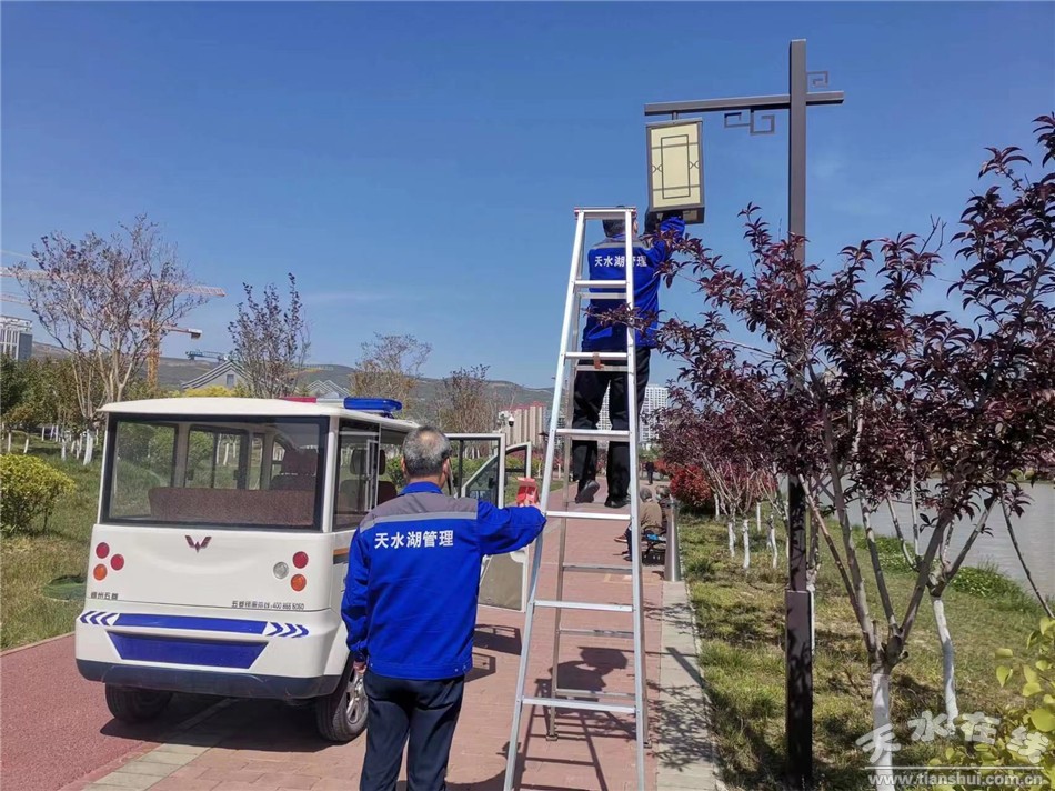 深入開展“美化”行動,提升城市市容市貌。不斷加強(qiáng)城市重點(diǎn)公共區(qū)域疫情防控各項(xiàng)措施,加大對不文明養(yǎng)犬等不文明的管理勸導(dǎo)。對區(qū)域內(nèi)各類座椅、衛(wèi)生間、玻璃隔斷、不銹鋼護(hù)欄、雕塑、小品、環(huán)衛(wèi)設(shè)施等相關(guān)配套設(shè)施等進(jìn)行擦拭和消殺,不斷鞏固文明城市創(chuàng)建成果,提升城市形象和品位。在天水湖管理處和藉河風(fēng)情線,組織人員對湖面水草、垃圾進(jìn)行打撈,提升湖水水質(zhì)。不斷加大湖水水體及周邊的清掃保潔力度,持續(xù)完善對湖水周邊生態(tài)環(huán)境建設(shè)與保護(hù)。