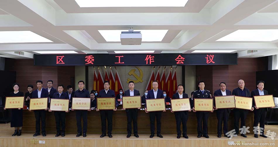 會(huì)議通報(bào)了2021年度區(qū)管領(lǐng)導(dǎo)班子考核結(jié)果,對(duì)獲得“優(yōu)秀”等次的單位頒發(fā)了獎(jiǎng)牌。