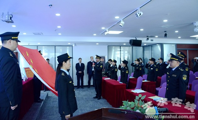 儀式上,宣讀了《秦州區(qū)農(nóng)業(yè)綜合行政執(zhí)法人員著裝管理暫行規(guī)定》,全體執(zhí)法人員面向國(guó)旗進(jìn)行了莊嚴(yán)的宣誓。