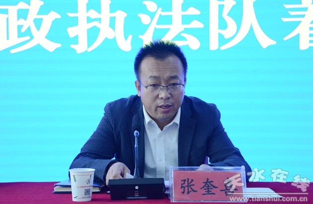 為進(jìn)一步推進(jìn)依法行政,加強(qiáng)隊(duì)伍正規(guī)化建設(shè)、樹(shù)立綜合行政執(zhí)法隊(duì)伍的良好形象,5月9日,秦州區(qū)農(nóng)業(yè)綜合行政執(zhí)法隊(duì)執(zhí)法人員著裝儀式舉行。秦州區(qū)委副書記張奎喜,天水市農(nóng)業(yè)農(nóng)村局二級(jí)調(diào)研員馬國(guó)武出席著裝儀式并講話。