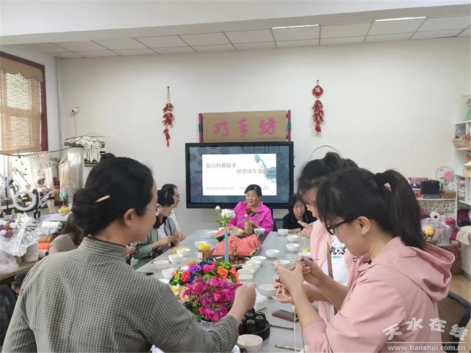 石馬坪街道東團(tuán)莊社區(qū)聯(lián)合天水市巾幗職業(yè)培訓(xùn)學(xué)校共同開展“品味鮮香粽子 感悟端午文化”端午節(jié)活動(dòng)。活動(dòng)中,大家分工合作,淘米、洗粽葉、剪粽繩、包粽子,在品粽座談間隙,由巾幗職業(yè)技術(shù)學(xué)校老師給大家講解演示了傳統(tǒng)手工編織與制作香包的方法,現(xiàn)場(chǎng)其樂融融。活動(dòng)中,社區(qū)還邀請(qǐng)轄區(qū)老黨員和群眾講述端午節(jié)傳統(tǒng)文化,進(jìn)一步增進(jìn)大家對(duì)端午節(jié)傳統(tǒng)文化的了解,營造了歡樂祥和的良好社區(qū)氛圍。