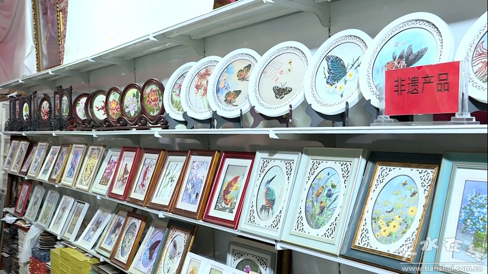 “我們的珠繡工藝畫(huà)分為珠繡畫(huà)掛件和珠繡畫(huà)擺件,珠繡屏風(fēng),產(chǎn)品以珠、管、片為原材料,以山、水、花鳥(niǎo)為主題,結(jié)合我們當(dāng)?shù)氐奈幕瘎?chuàng)作了麥積煙雨、伏羲畫(huà)八卦、大地灣文化等200多種文創(chuàng)產(chǎn)品!碧焖星墒质止に嚻酚邢薰究偨(jīng)理王莉說(shuō)。